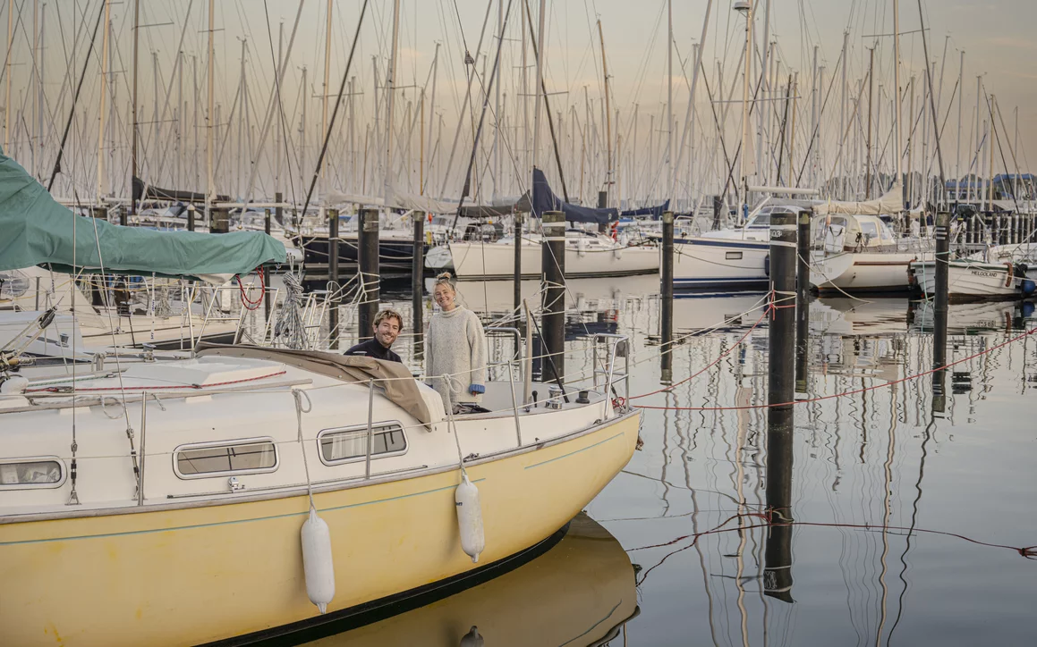 Die Kielerin hat das Boot – eine 28 Fuß lange Bandholm von 1974 - vor sieben Jahren von ihrem Opa übernommen. Der damals 83-Jährige hatte beschlossen, dass die Zeit reif war, um seinen Enkelinnen das Ruder zu übergeben. Gemeinsam mit ihrer Schwester Marike hat Sunna die kleine Yacht in ein Zuhause auf dem Wasser verwandelt. Für sich, für ihre Freunde und für ihren Partner Francesco. Der Biologe ist vor zwölf Jahren vom Golf von Neapel an die Kieler Förde gewechselt und war dem Segelsport schon in seiner Heimat verbunden.