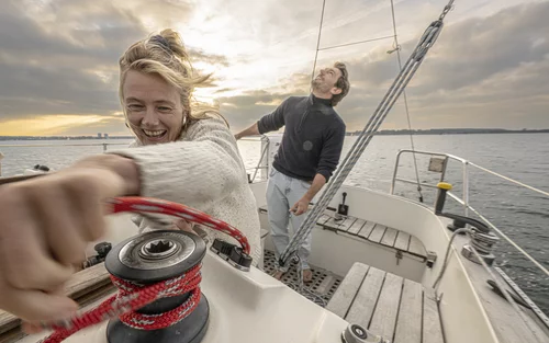 Sunna und Francesco sind ein eingespieltes Team. Ihre Törns haben sie bereits nach Dänemark und durchs Kattegat geführt, aber auch durch die schleswig-holsteinischen Reviere der Kieler Bucht und der Schlei. Die beiden teilen nicht nur die Liebe zum Wasser, sondern auch den Traum, eines Tages auf eigenem Kiel den Atlantik zu überqueren. „Das ist nur eine Frage des ‚Wann‘, nicht des ‚Ob‘“, sagt Francesco mit einem Lächeln.